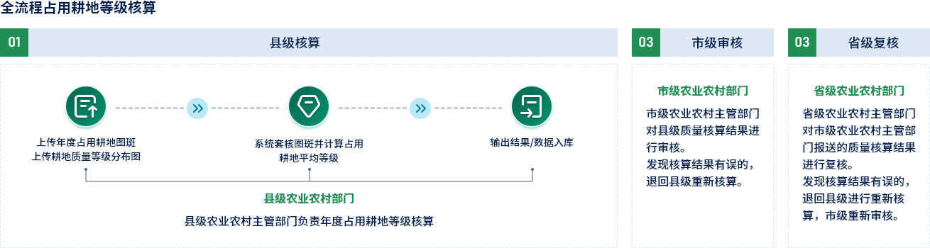 提供縣級初驗、市級鑒定、省級抽核的三級耕地質量驗收管理體系,對各層級驗收工作綜合管理。